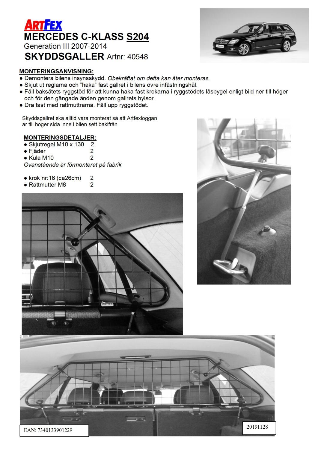 Modellanpassat Artfex Lastgaller, även kallat Skyddsgaller, till Mercedes C-Klass 2008-2014 (S204)