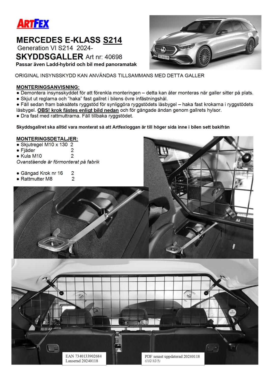 Artfex Lastgaller Mercedes E-Klass 2023- ink laddhybrid