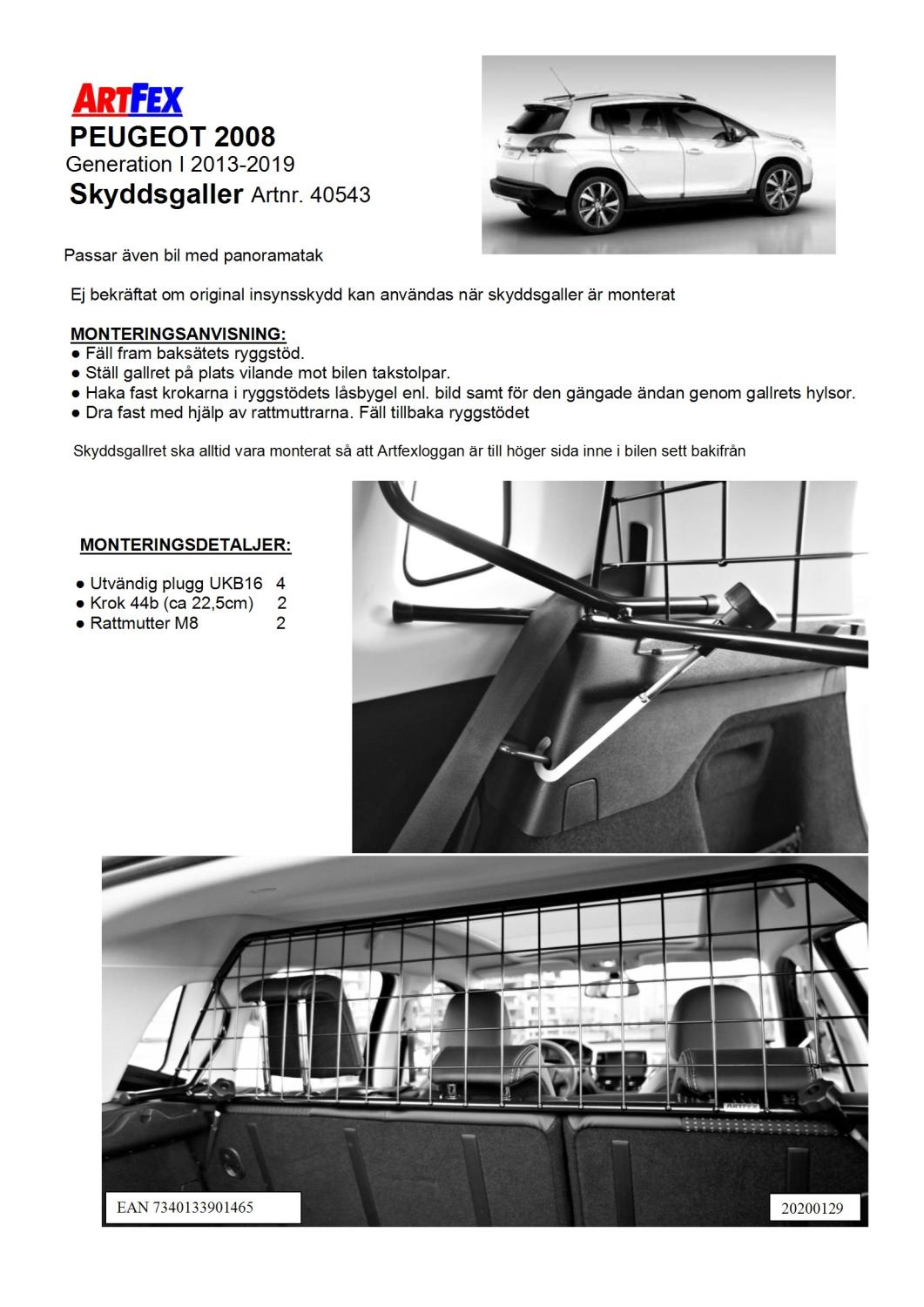 Modellanpassat Artfex Lastgaller, även kallat Skyddsgaller, till Peugeot 2008 2013-2019 (Gen1)