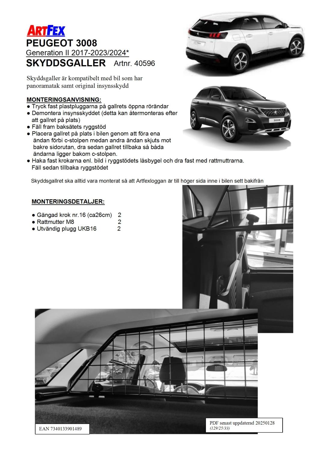 Modellanpassat Artfex Lastgaller, även kallat Skyddsgaller, till Peugeot 3008 Gen ll 2017-