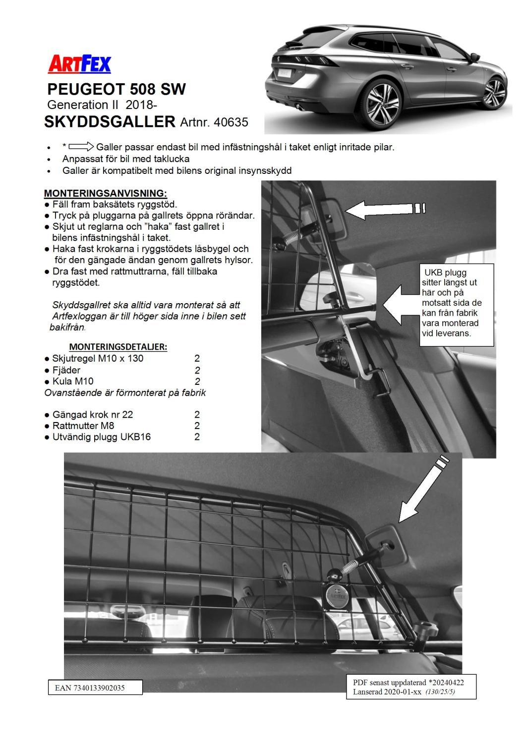 Modellanpassat Artfex Lastgaller, även kallat Skyddsgaller Peugeot 508 SW 2019- Generation II