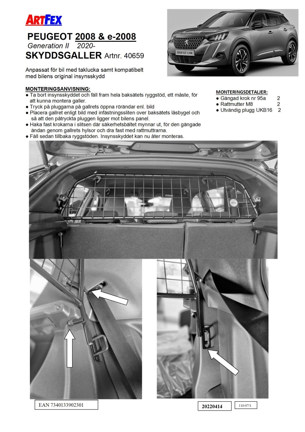 Modellanpassat Artfex Lastgaller, även kallat Skyddsgaller, till Peugeot 2008 & e-2008 2020-