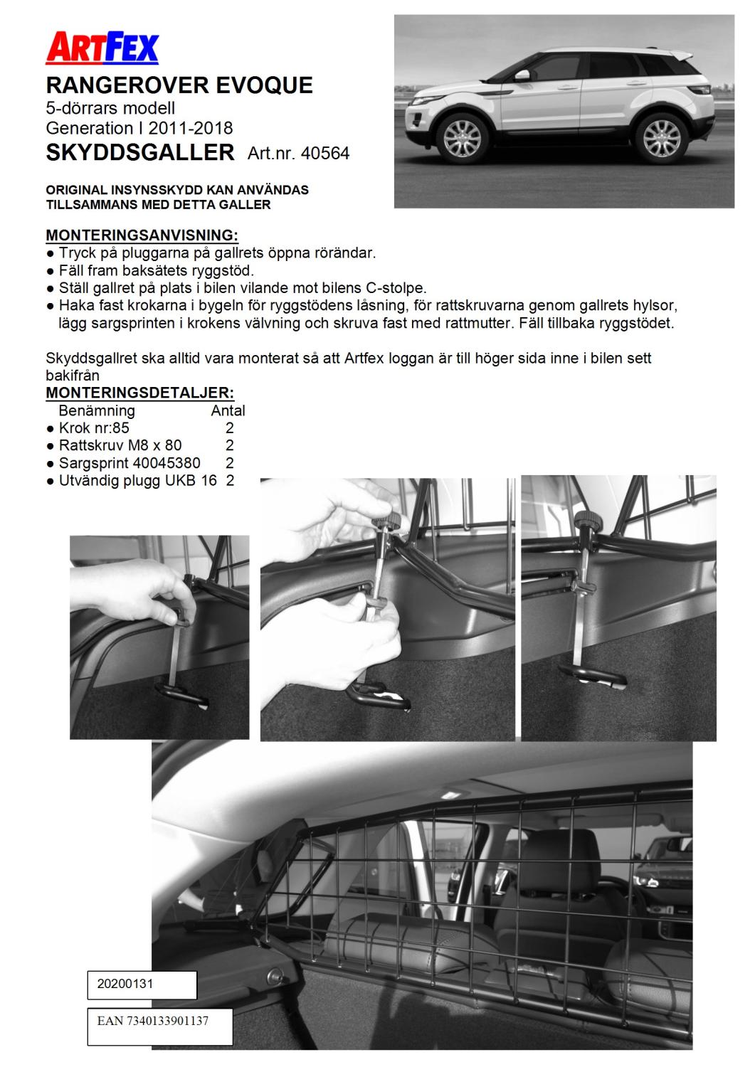 MOdellanpassat Artfex Lastgaller Range Rover Evoque 2019-