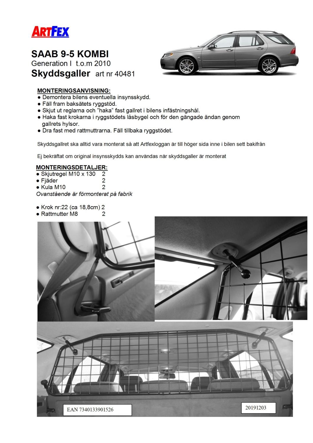 Modellanpassat Artfex Lastgaller, även kallat Skyddsgaller, till SAAB 9-5 Combi 1998-2010