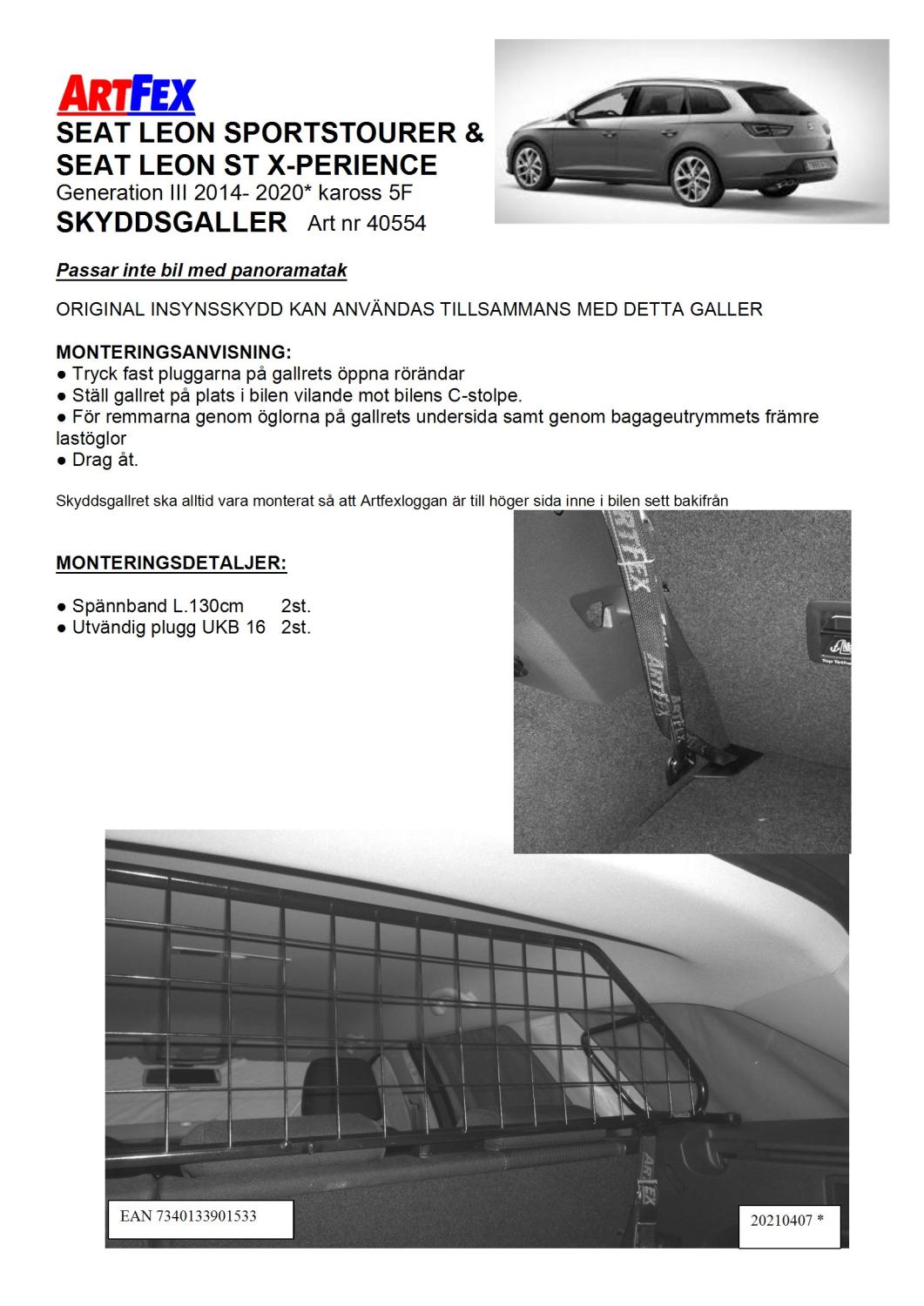 Modellanpassat Artfex Lastgaller, även kallat Skyddsgaller, till Seat Leon ST kombi 2014-2020