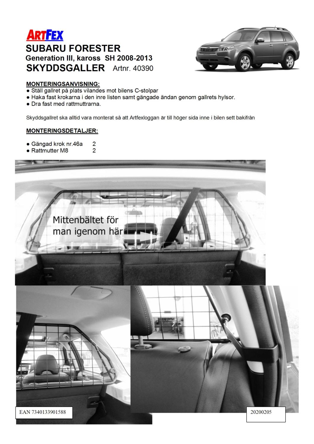 Modellanpassat Artfex Lastgaller, även kallat Skyddsgaller, till Subaru Forester Gen 3 ,2008-2013