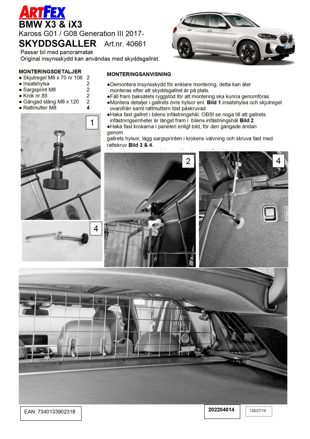 Modellanpassat Artfex Lastgaller, även kallat Skyddsgaller, till BMW X3 2018- G01