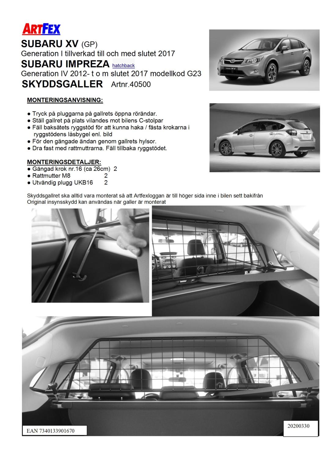 Modellanpassat Artfex Lastgaller, även kallat Skyddsgaller, till Subaru XV 2018- generation 1