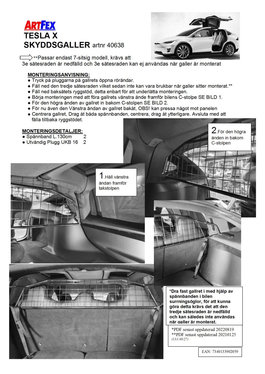 Modellanpassat Artfex Lastgaller, även kallat Skyddsgaller, till Tesla Modell X 2015- Endast till 7-sitsig bil