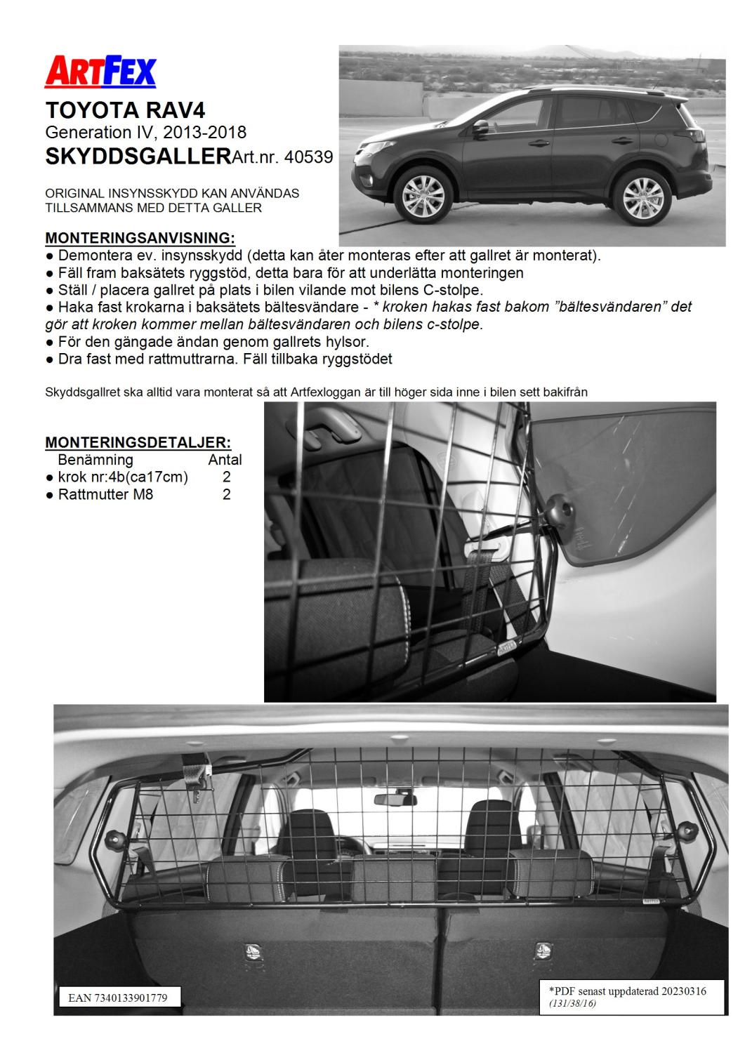 Modellanpassat Artfex Lastgaller, även kallat Skyddsgaller, till Toyota Rav 4 2013-2018 (Gen 4)