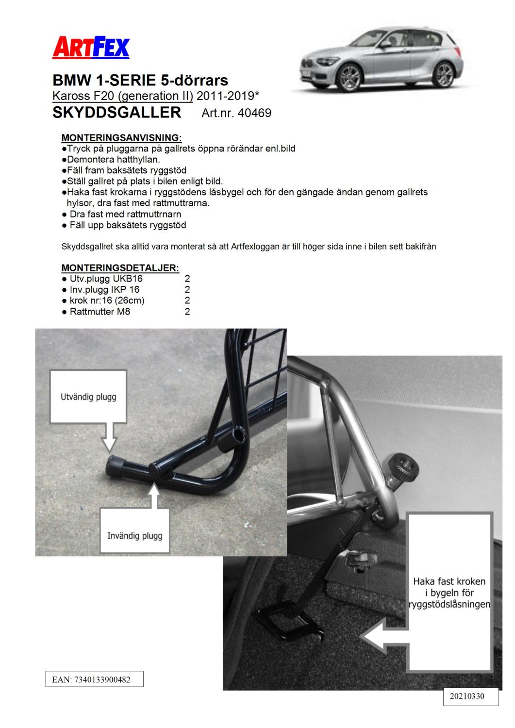 Modellanpassat Artfex Lastgaller, även kallat Skyddsgaller, till BMW 1-serie 2011-2019 F20