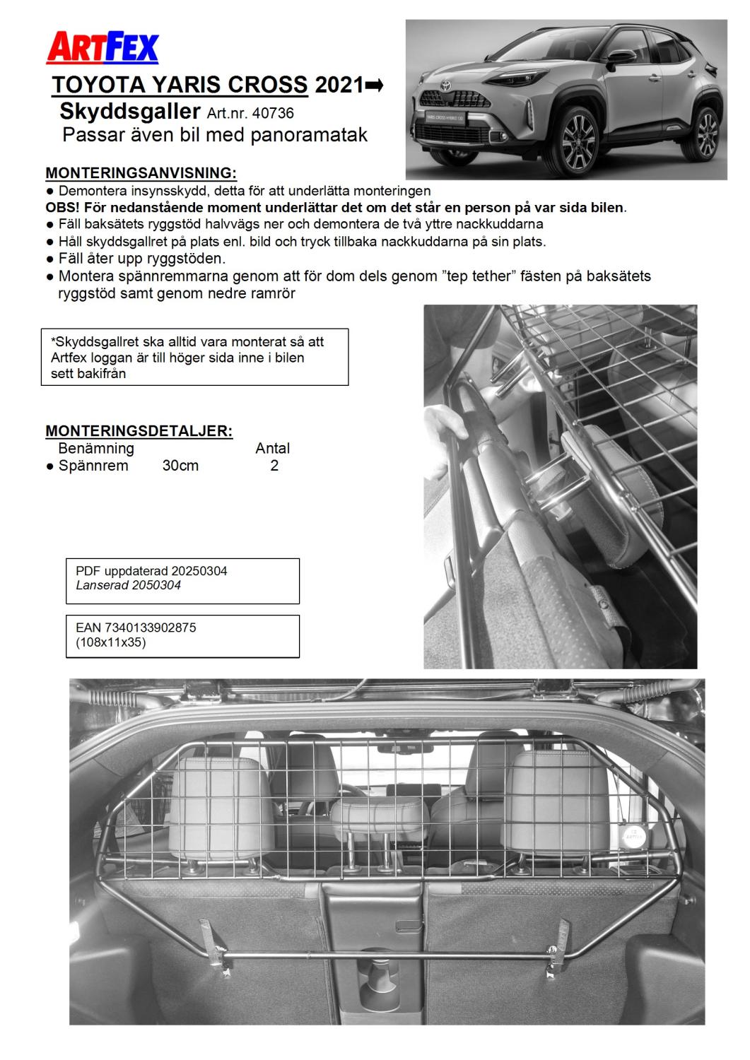 Modellanpassat Artfex Lastgaller, även kallat Skyddsgaller, till Toyota Yaris Cross 2021-