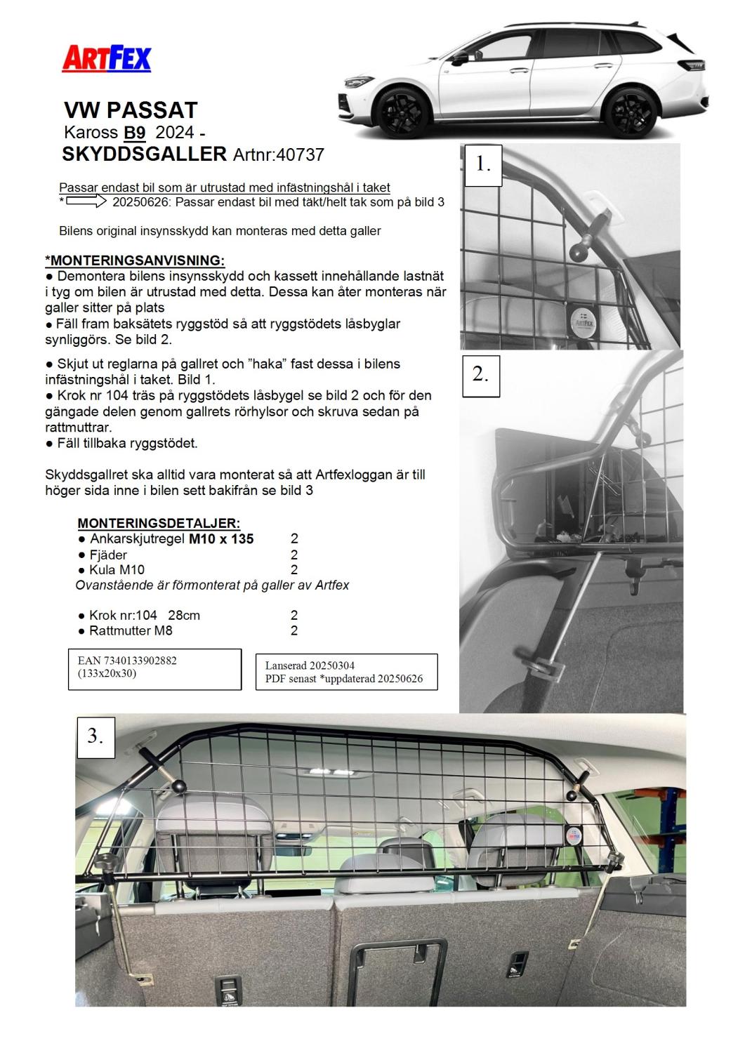 Modellanpassat Artfex Lastgaller, även kallat Skyddsgaller, till Volkswagen Passat 2024- B9