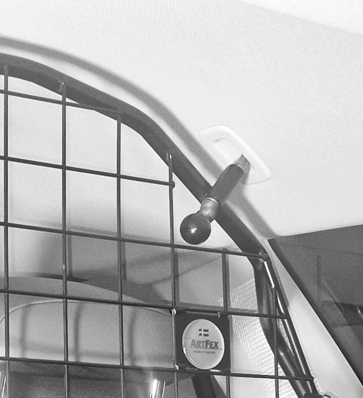 Passar endast bil med infästningshål i taket! Bilens orginalinsynsskydd kan användas med detta galler.