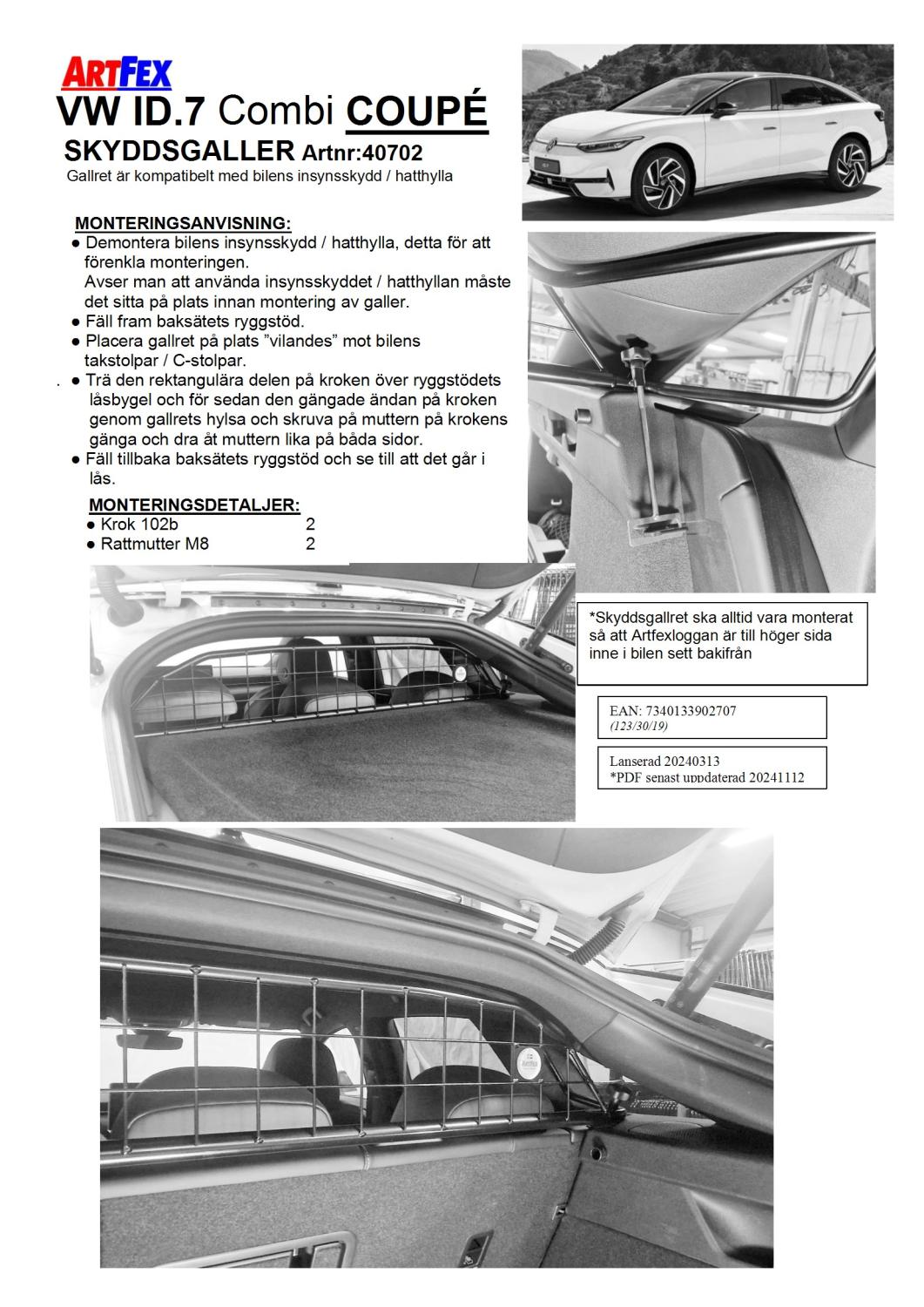 Modellanpassat Artfex Lastgaller, även kallat Skyddsgaller, till VW ID.7 Combi Coupé 2023-