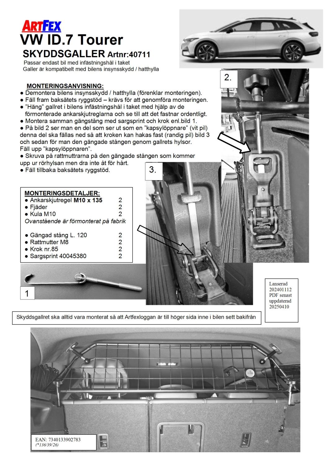 Modellanpassat Artfex Lastgaller, även kallat Skyddsgaller, till VW ID.7 Tourer 2024-