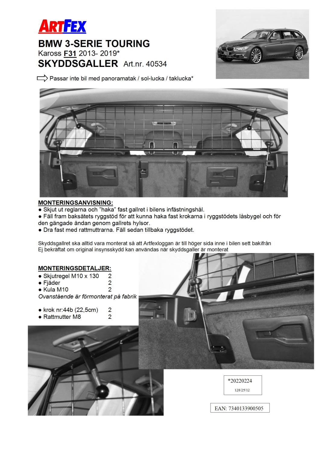 Modelanpassat Artfex Lastgaller, även kallat skyddsgaller, till BMW 3-Serie Touring 2012-2019 F31