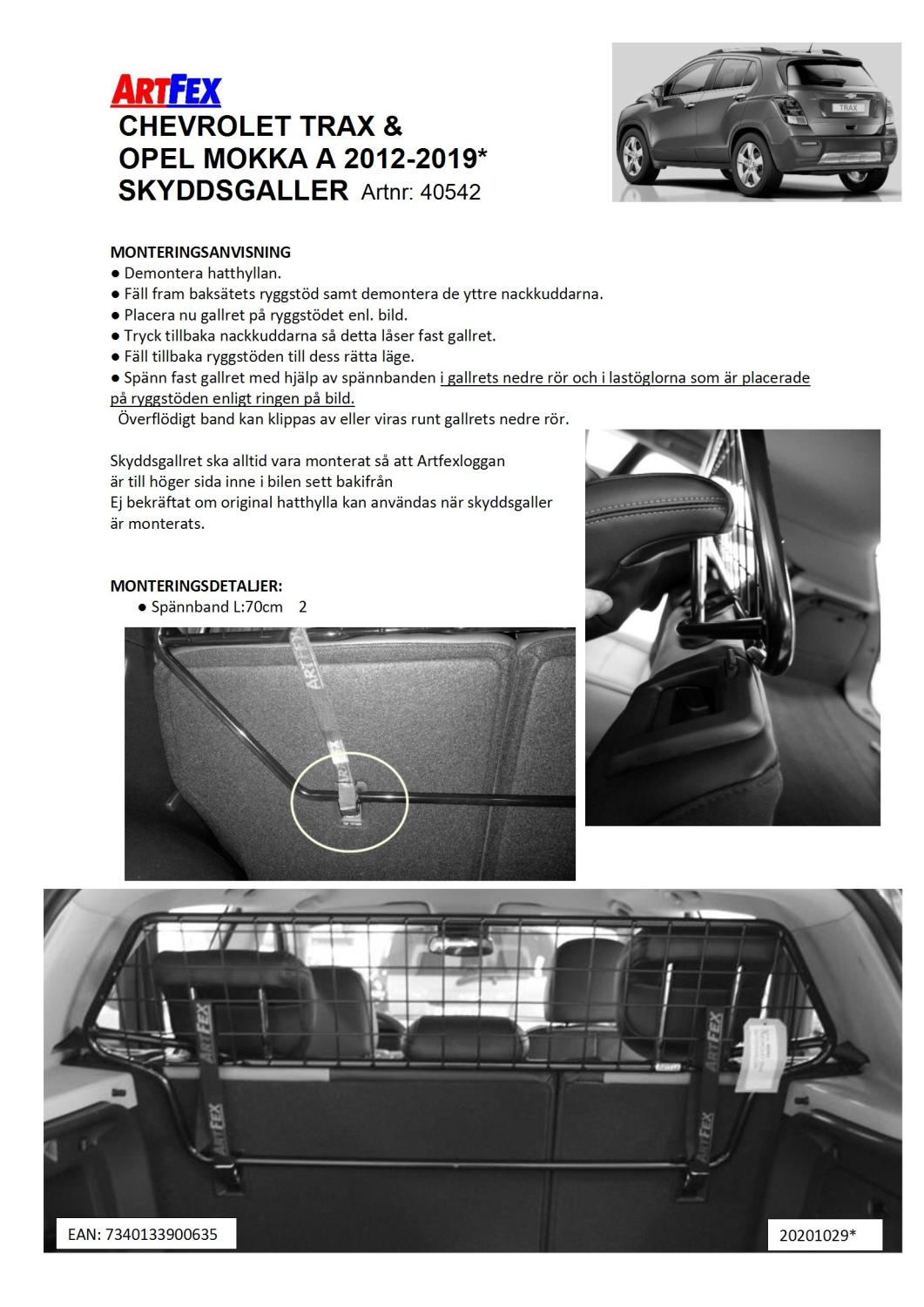 ModellanpassatArtfex Lastgaller, även kallat Skyddsgaller, till Opel Mokka 2012-2019, Chevrolet Trax