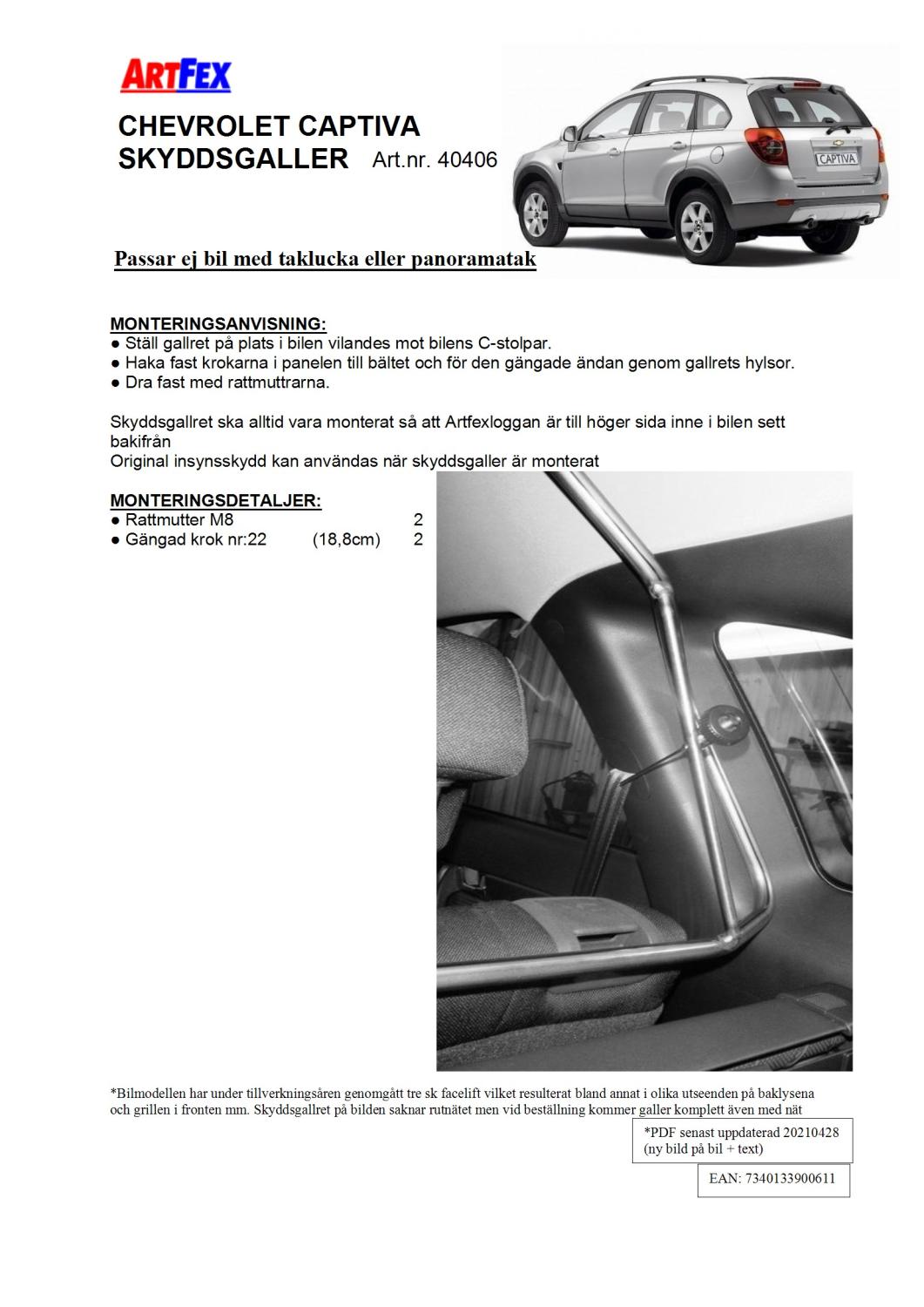 Modellanpassat Artfex Lastgaller, även kallat Skyddsgaller, till Chevrolet Captiva 2006-