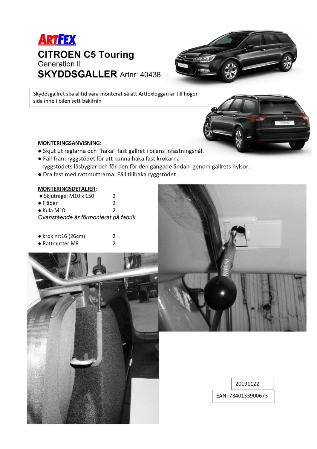 Modellanpassat Artfex Lastgaller, även kallat Skyddsgaller, till Citroen C5 Touring gen ll