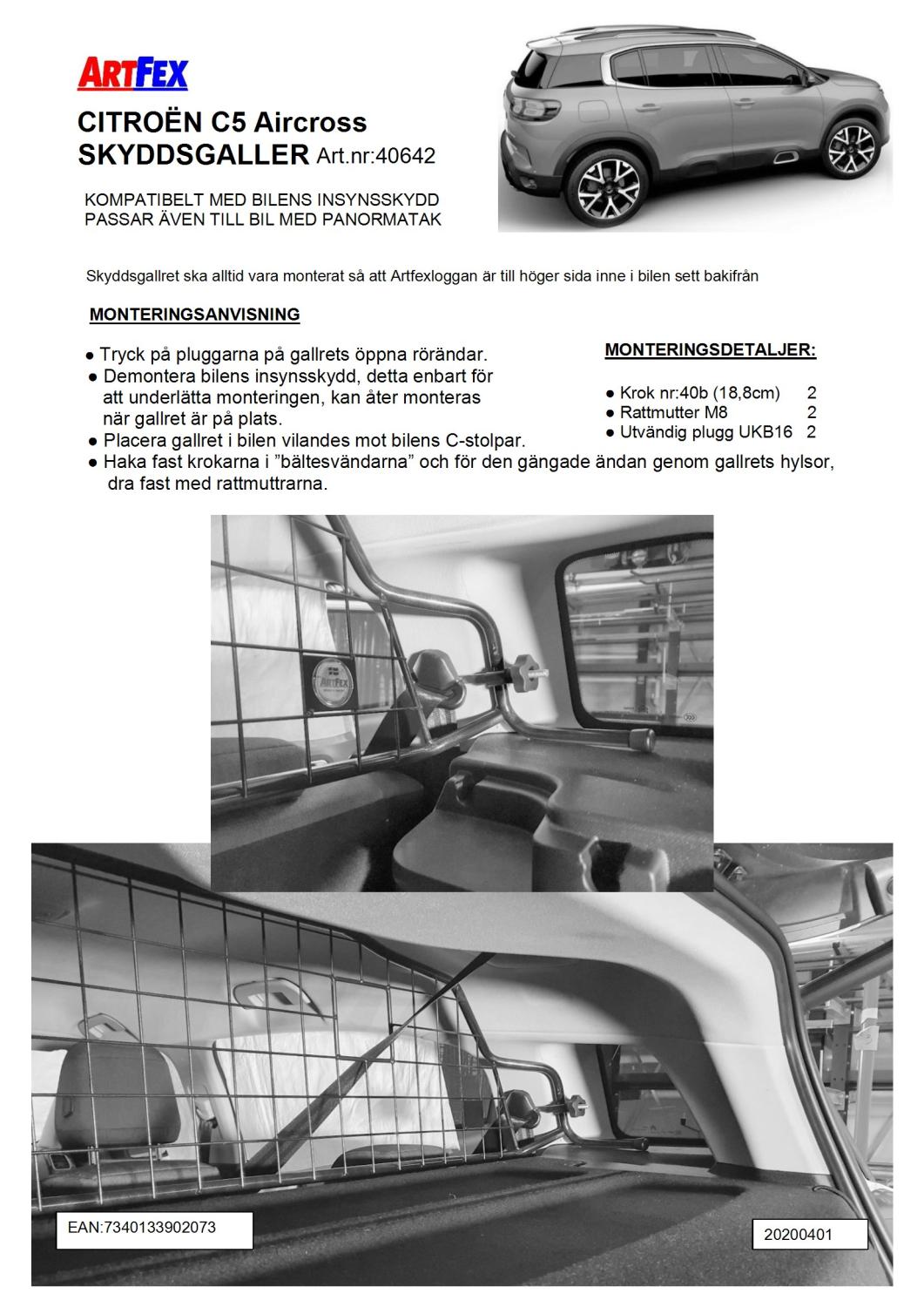 Modellanpassat Artfex Lastgaller, även kallat Skyddsgaller, till Citroën C5 Aircross 2017-
