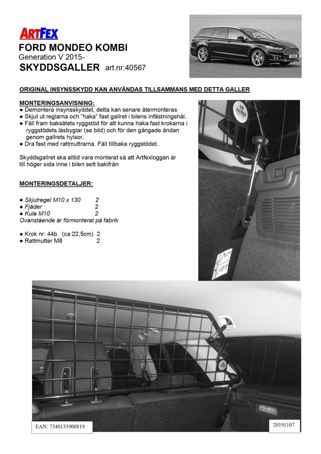 Modellanpassat Artfex Lastgaller, även kallat Skyddsgaller, till Ford Mondeo Kombi 2015-