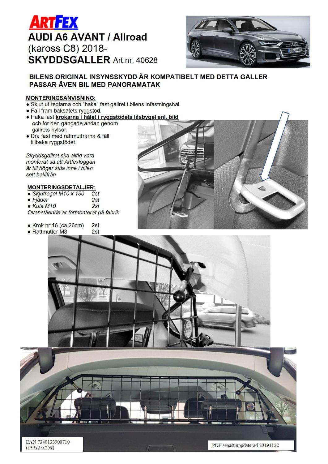 Modellanpassat Artfex Lastgaller, även kallat Skyddsgaller, Audi A6 Avant/Allroad 2019- C8