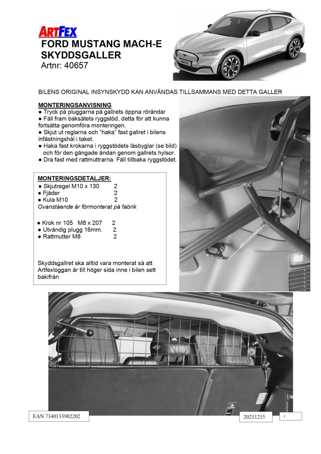 Modellanpassat Artfex Lastgaller, även kallat Skyddsgaller, till Mustang Mach E 2021-
