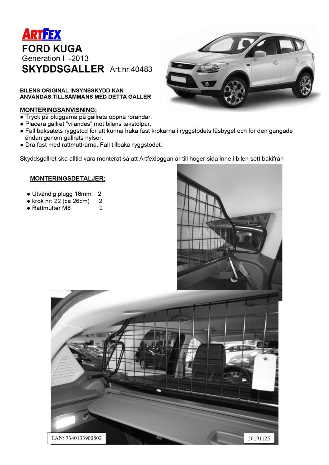Modellanpassat Artfex Lastgaller, även kallat Skyddsgaller, till Ford Kuga 2008-2012