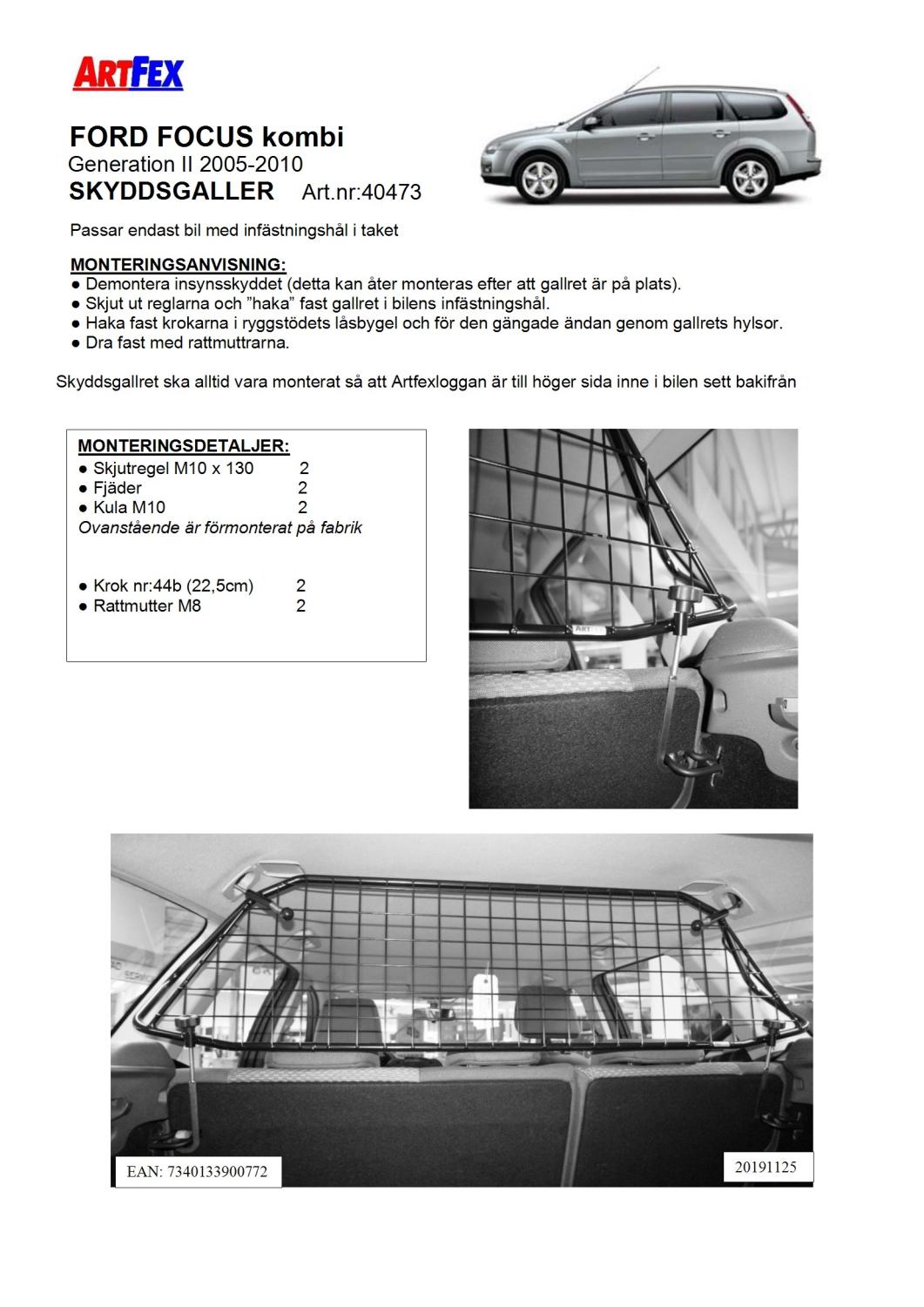 Modellanpassat Artfex Hundgaller, även kallad Skyddsgaller, till Ford Focus 2005-2011