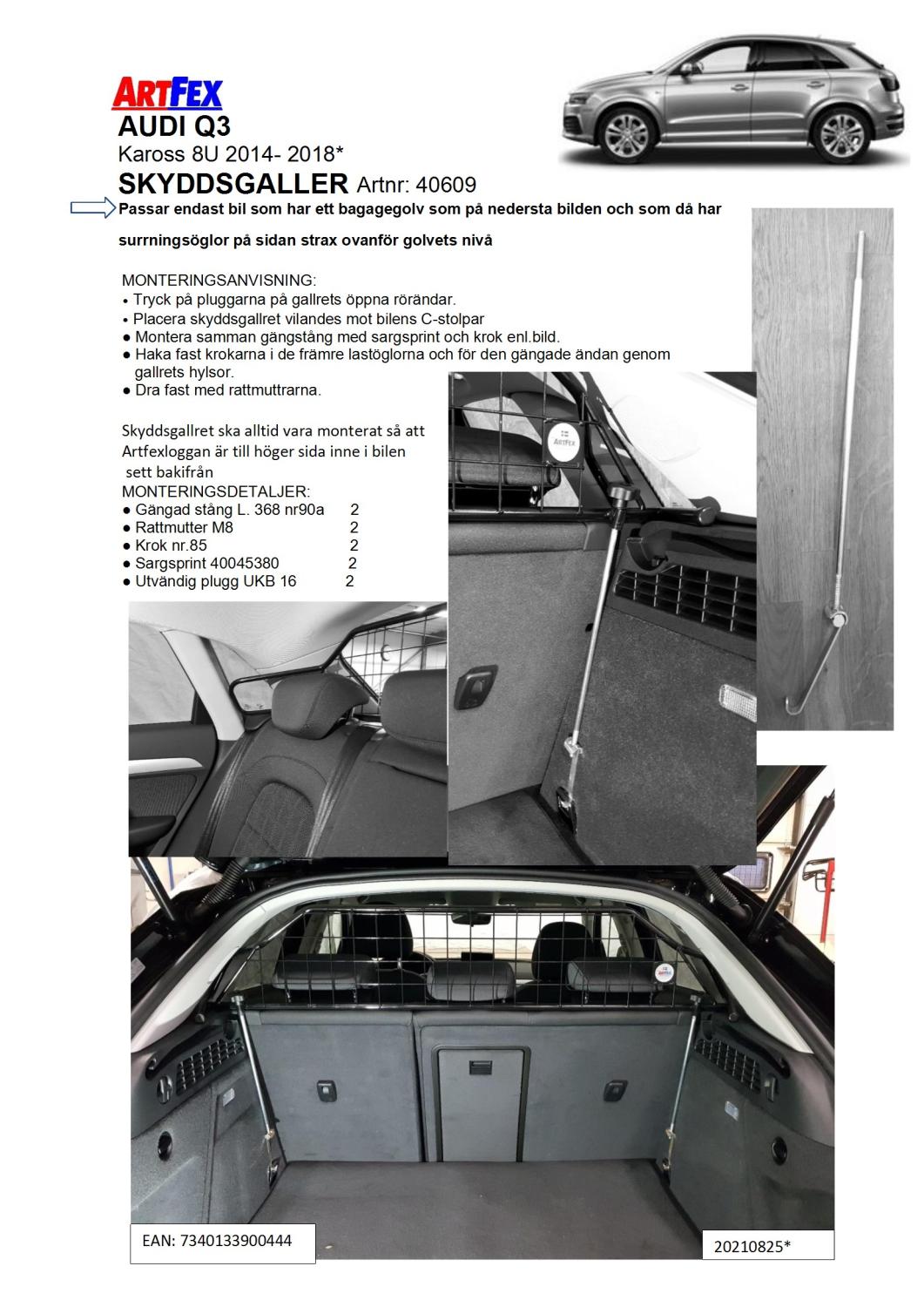 Modelanpassat Artfex Lastgaller Audi Q3 Kaross 8U