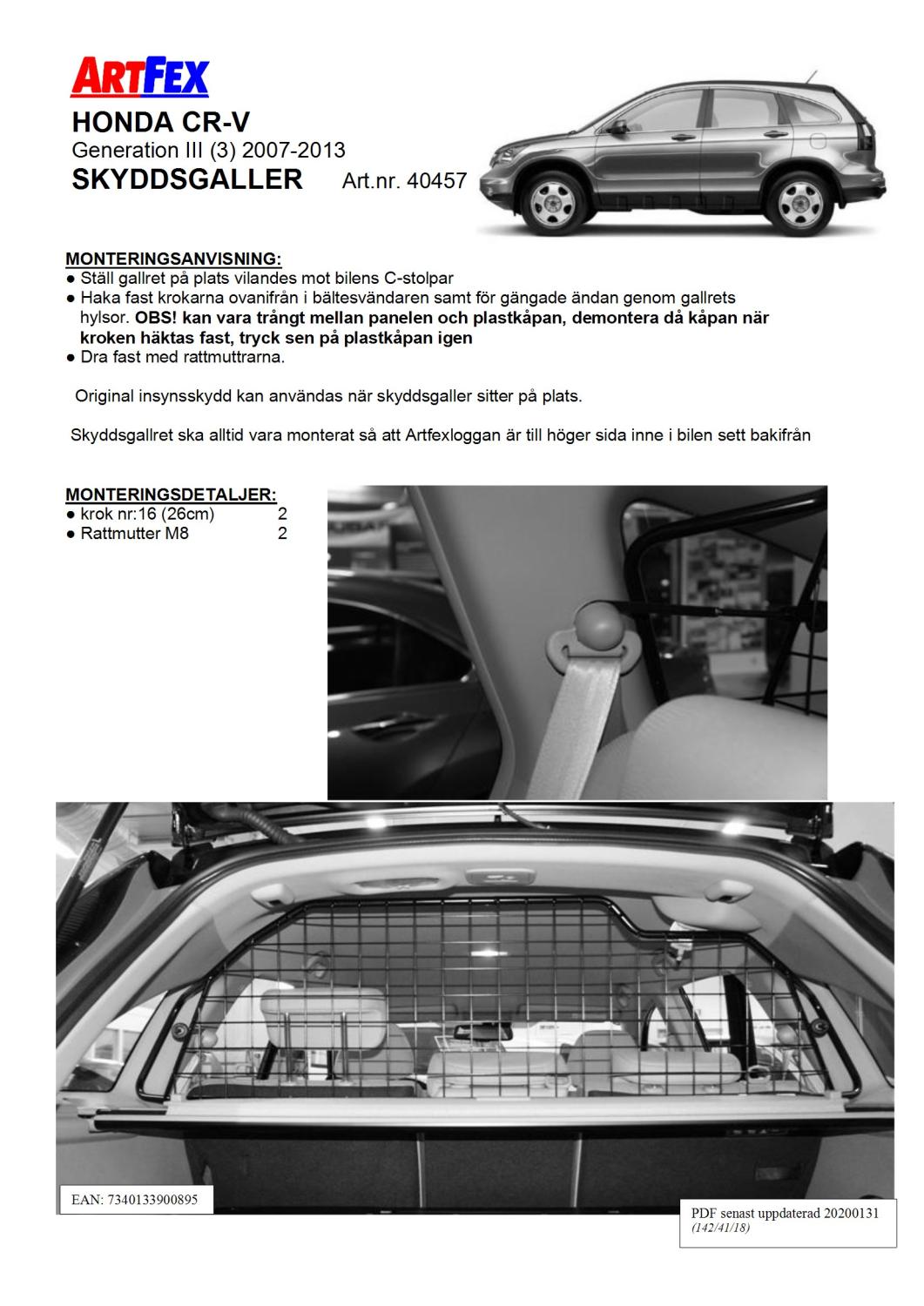 Modellanpassat Artfex Lastgaller, även kallat Skyddsgaller, till Honda CR-V 2007-2011 Generation 3