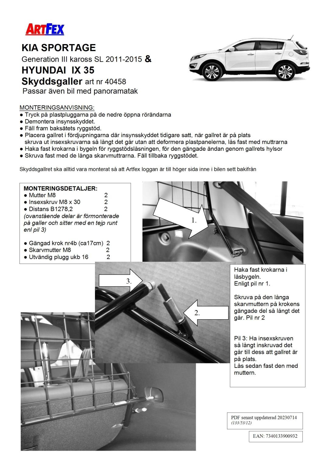 Modellanpassning Artfex Lastgaller, även kallat Skyddsgaller, till Hyundai iX 35 2010-2015