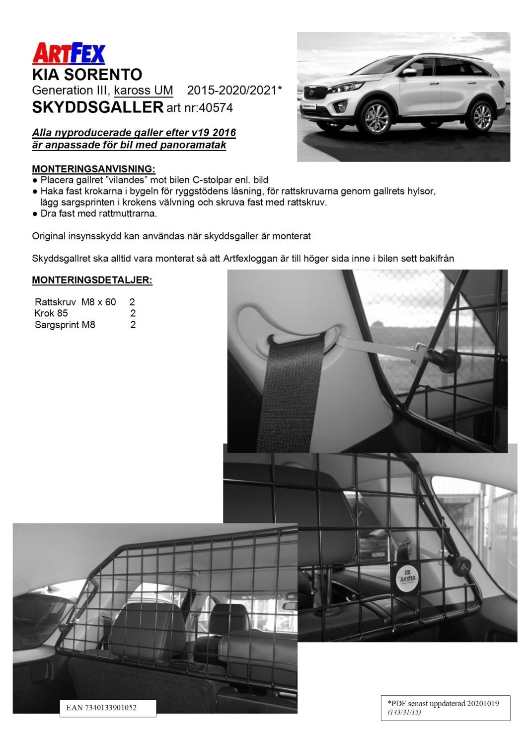 Modellanpassat Artfex Lastgaller, även kallat Skyddsgaller, till Kia Sorento 2015-2020 (Generation 3)