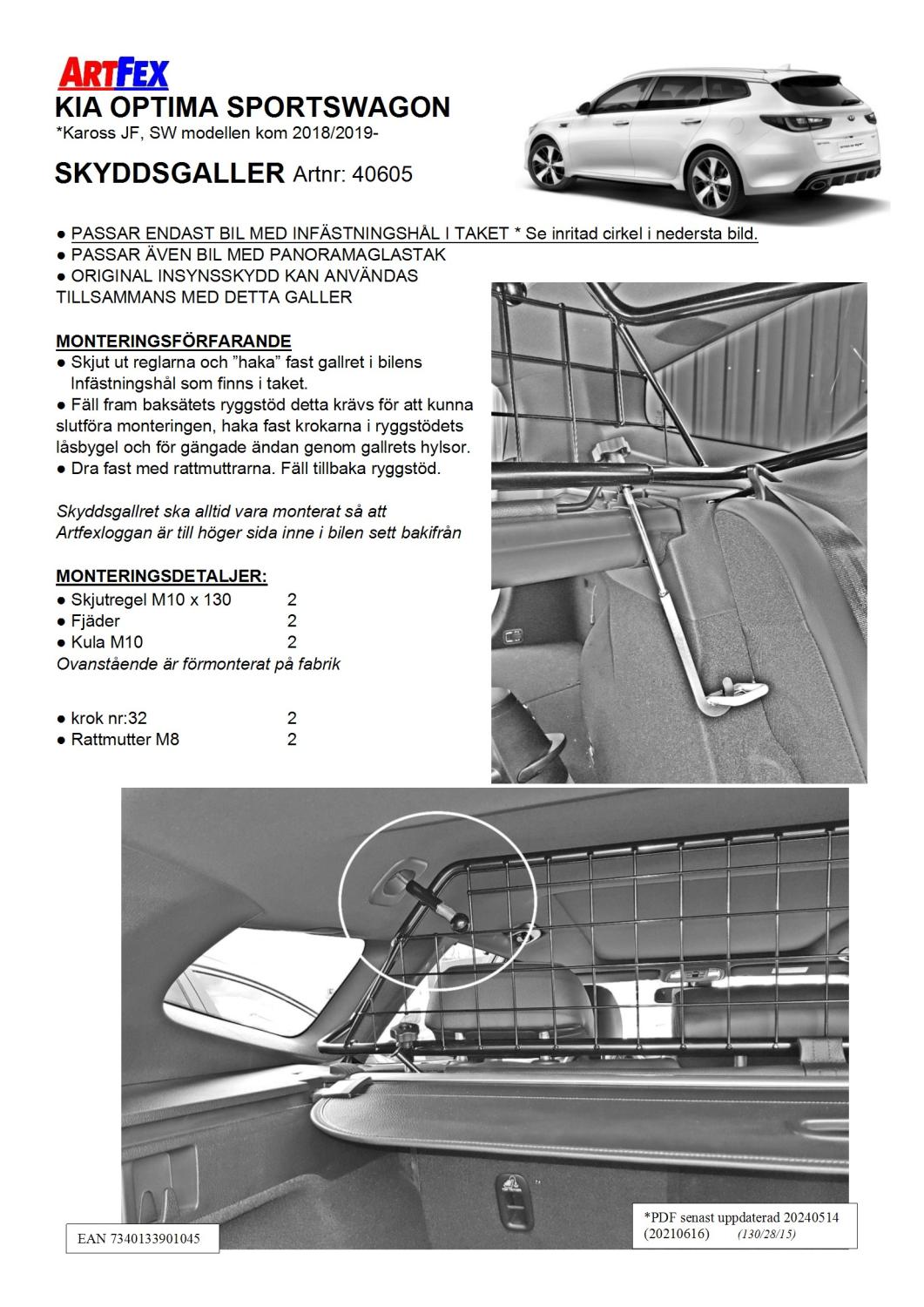 Modellanpassade Artfex Lastgaller, även kallat Skyddsgaller, till KIA Optima Sportswagon JF 2018-