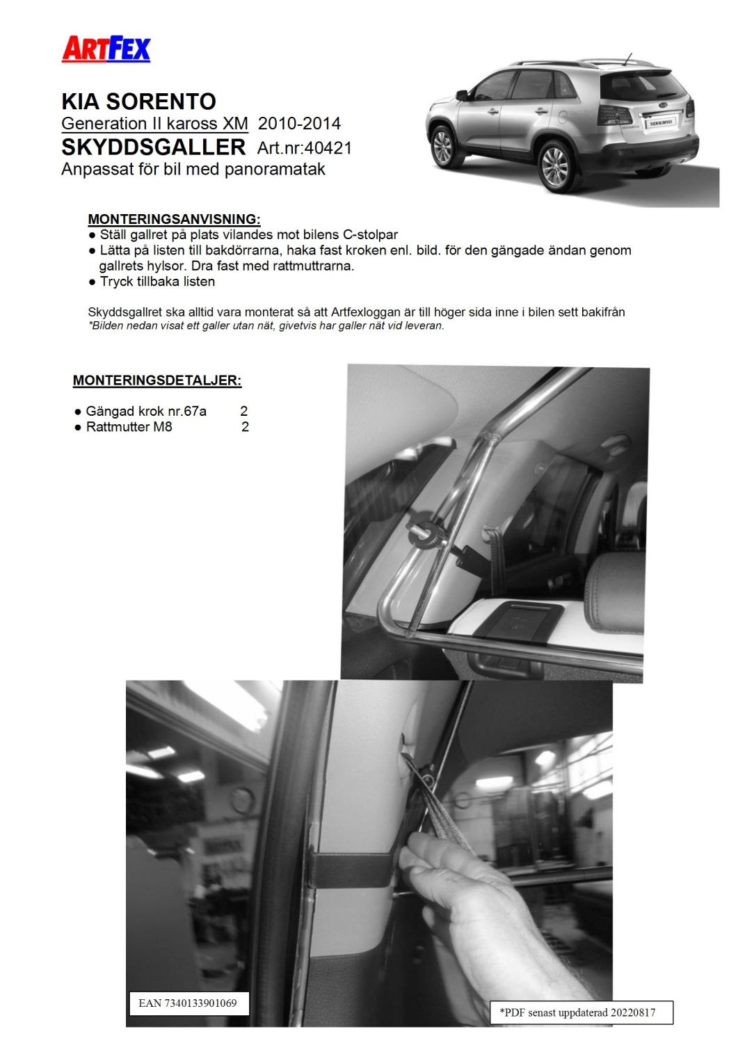 Modellanpassat Artfex Lastgaller, även kallat Skyddsgaller, till Kia Sorento 2010-2014