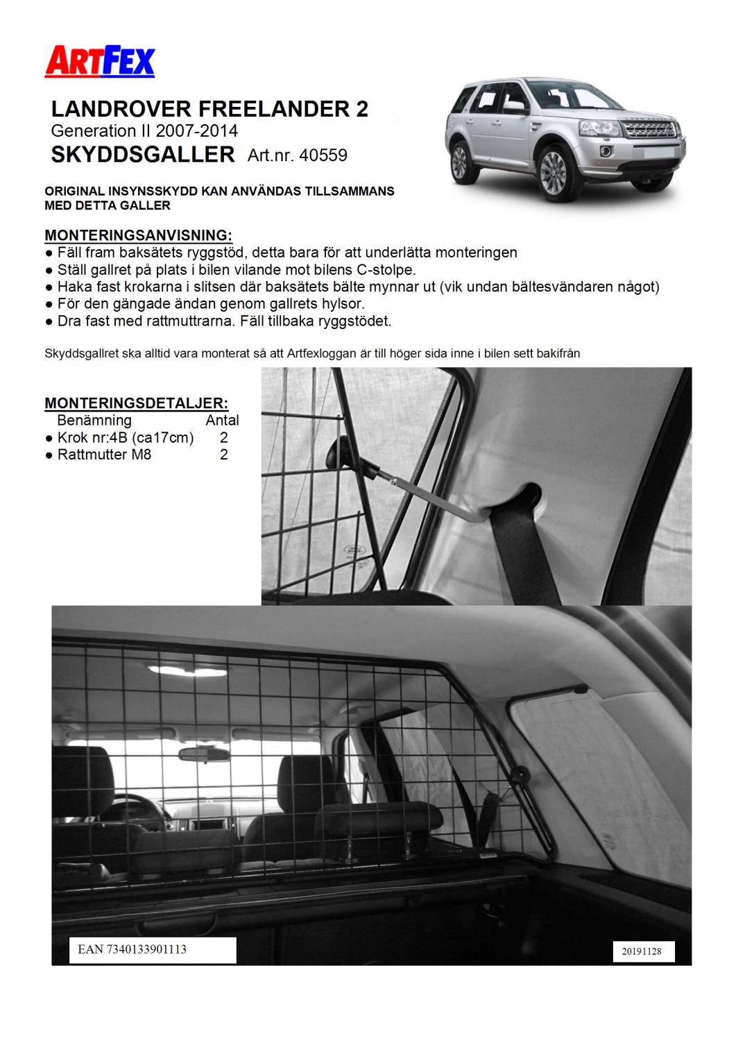Modellanpassat Artfex Lastgaller, även kallat Skyddsgaller, till Land Rover Freelander 2006-2014