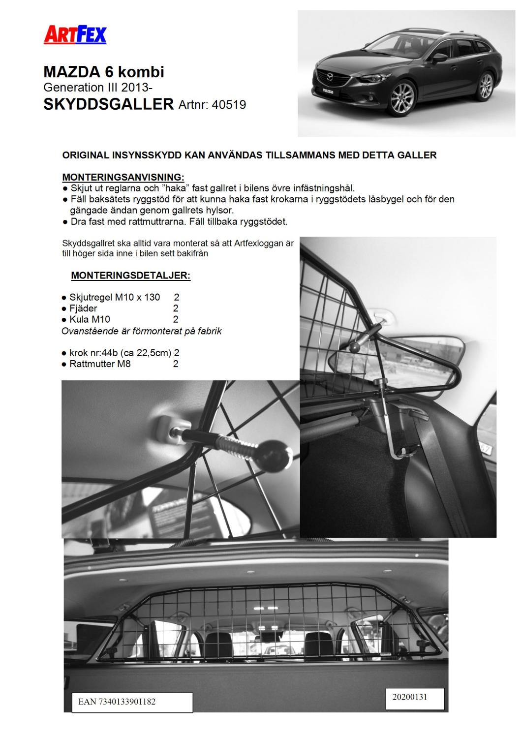 Modellanpassat Artfex Lastgaller, även kallat Skyddsgalller, till Mazda 6 Kombi 2013-