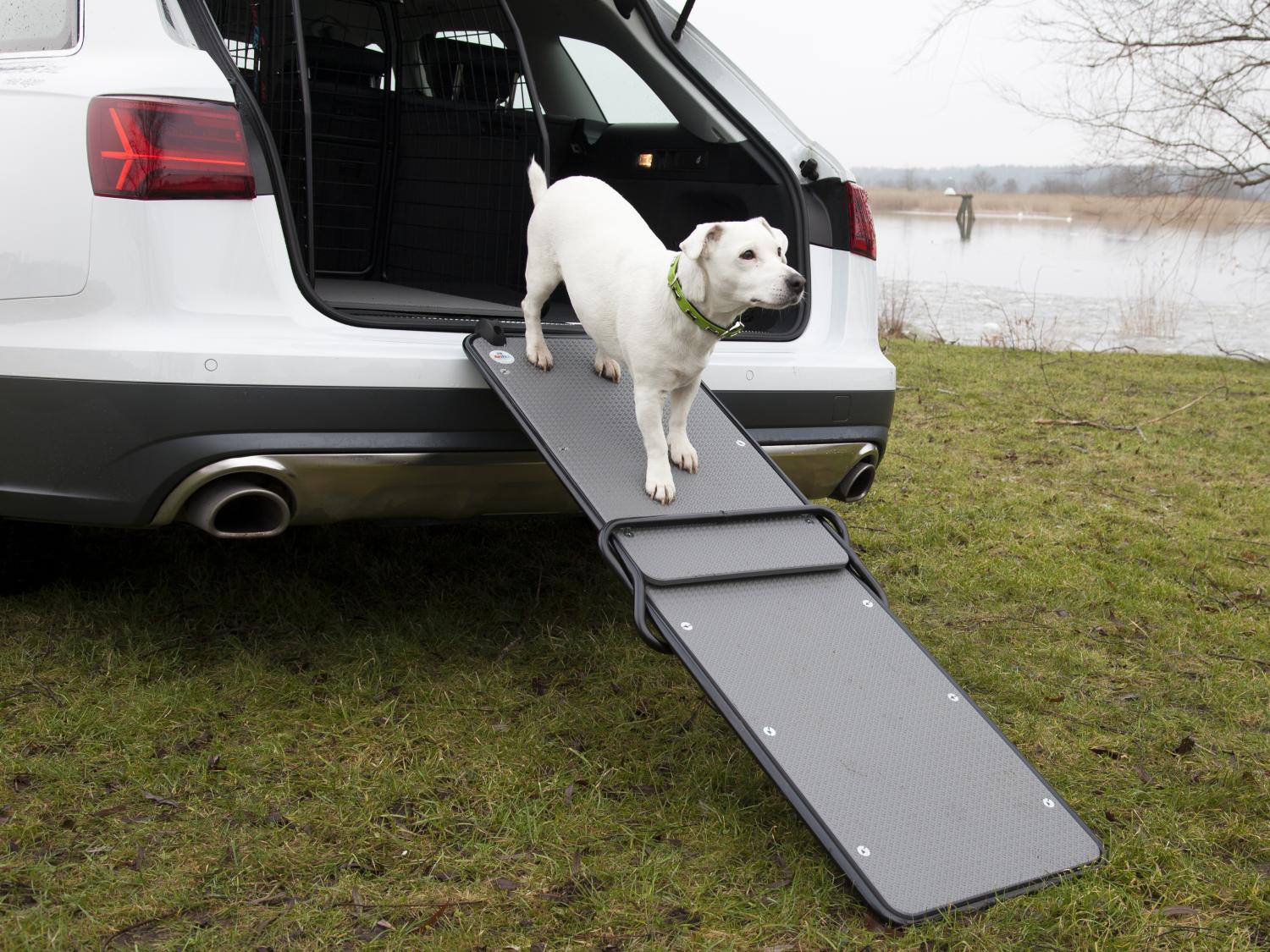 Låt din hund slippa att hoppa in i bilen och spara hundens leder och ben. Rampen sparar även husse eller mattes rygg från tunga lyft av hunden som ska in i bilen.