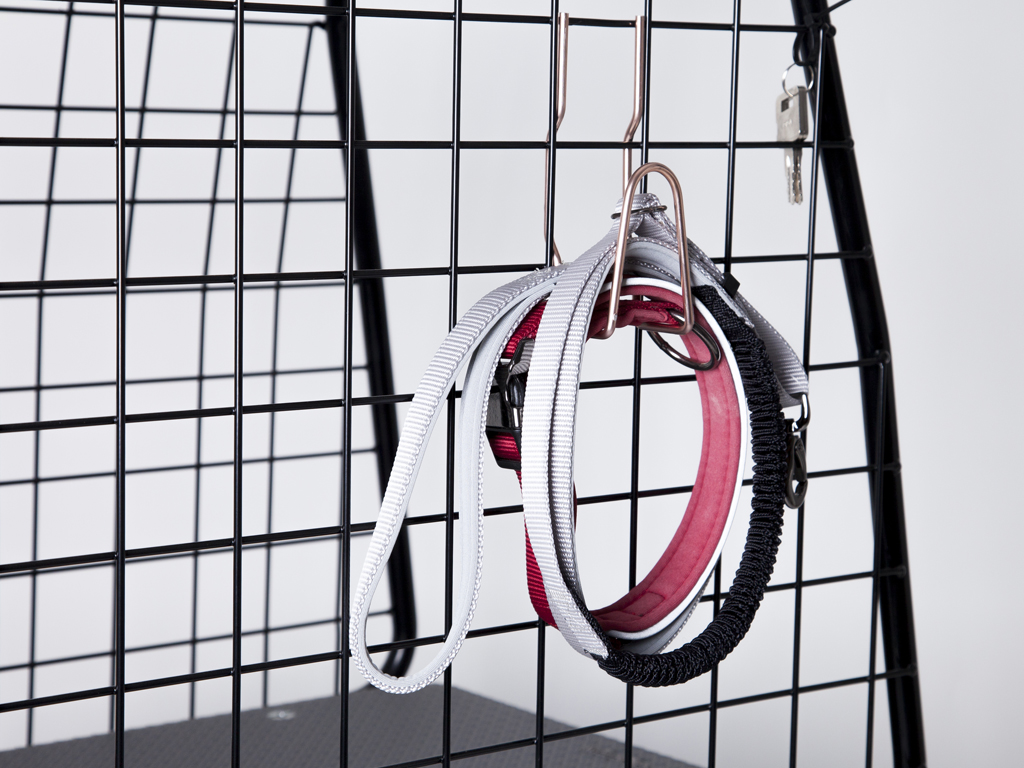 Helt skrammelfria krokar från Artfex som är specialanpassade till deras hundburar, hundgrindar och hundgaller.