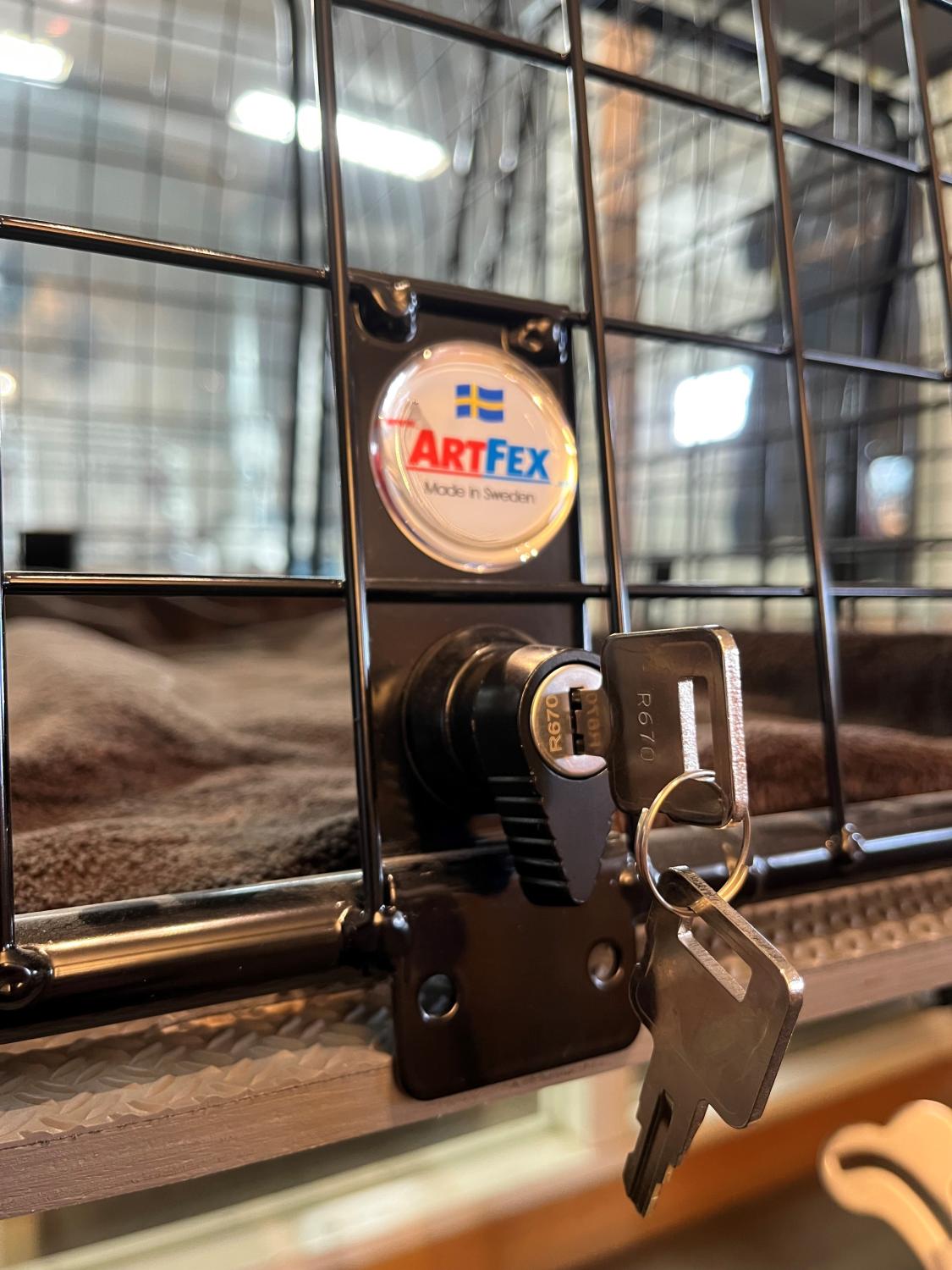 Artfex lås passande till bur och grind inklusive 2st nycklar. Se bilder under respektive modell.