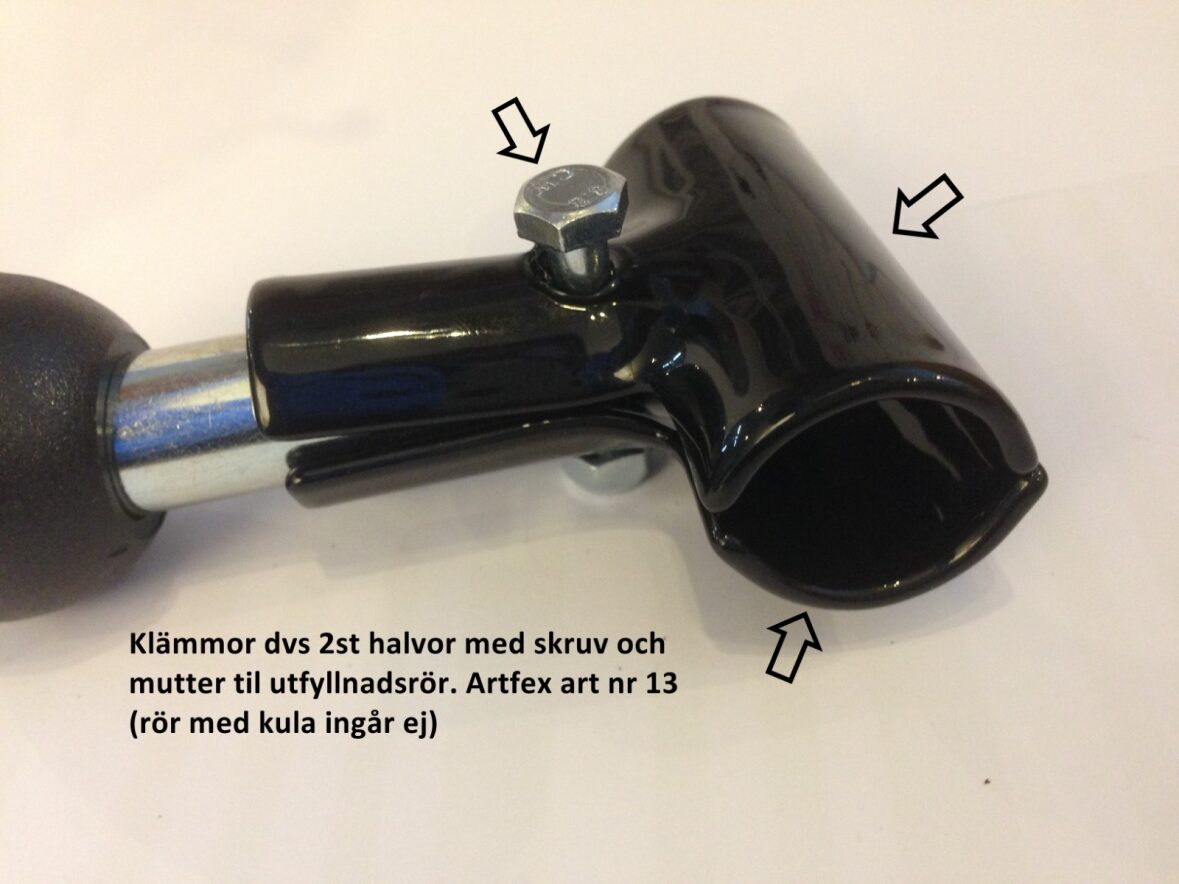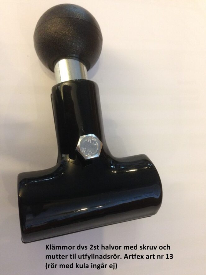 Klämma inklusive skruv och mutter. För att fästa art nr 16 behöver man 2 st av art 13.